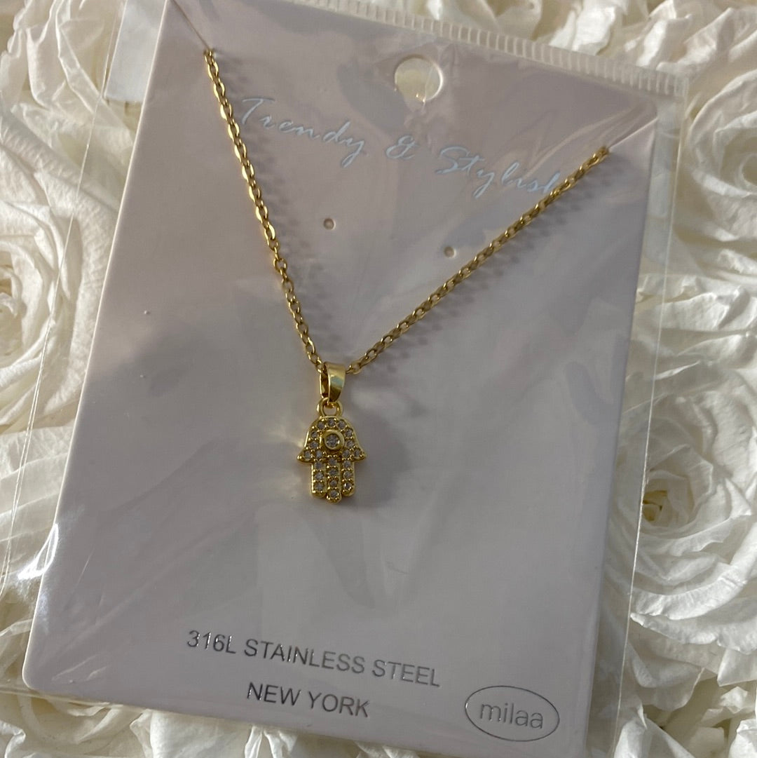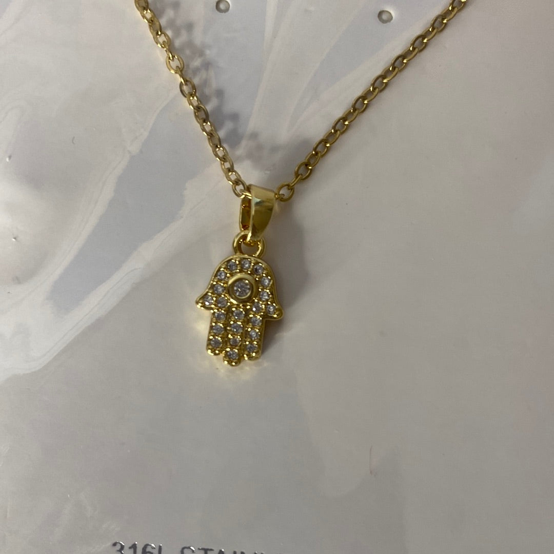 Gold stainless steel Hamsa Necklace.