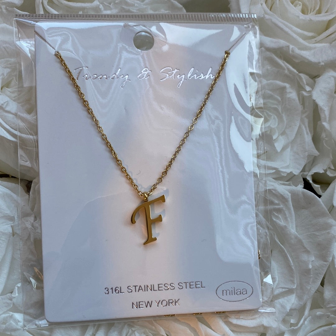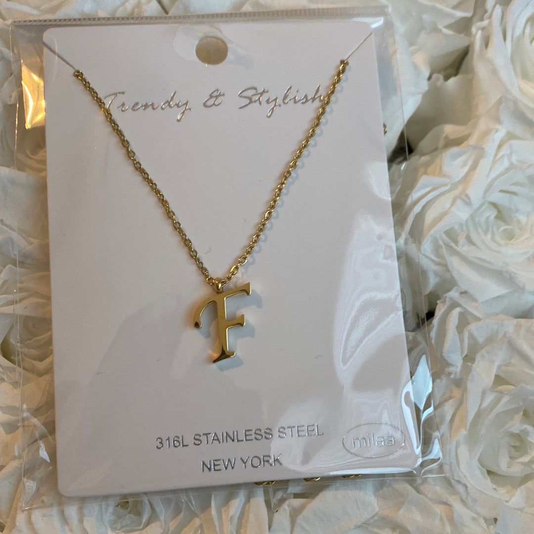 Stainless Steel Letter F Necklace.